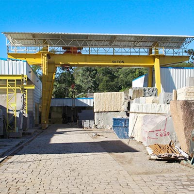 Com um parque fabril de 3.200m2 de área construída em um terreno de 16.000m2, são beneficiados mensalmente, mais de 6.000m2 de basaltos, granitos e mármores extraídos de 8 jazidas próprias em operação.